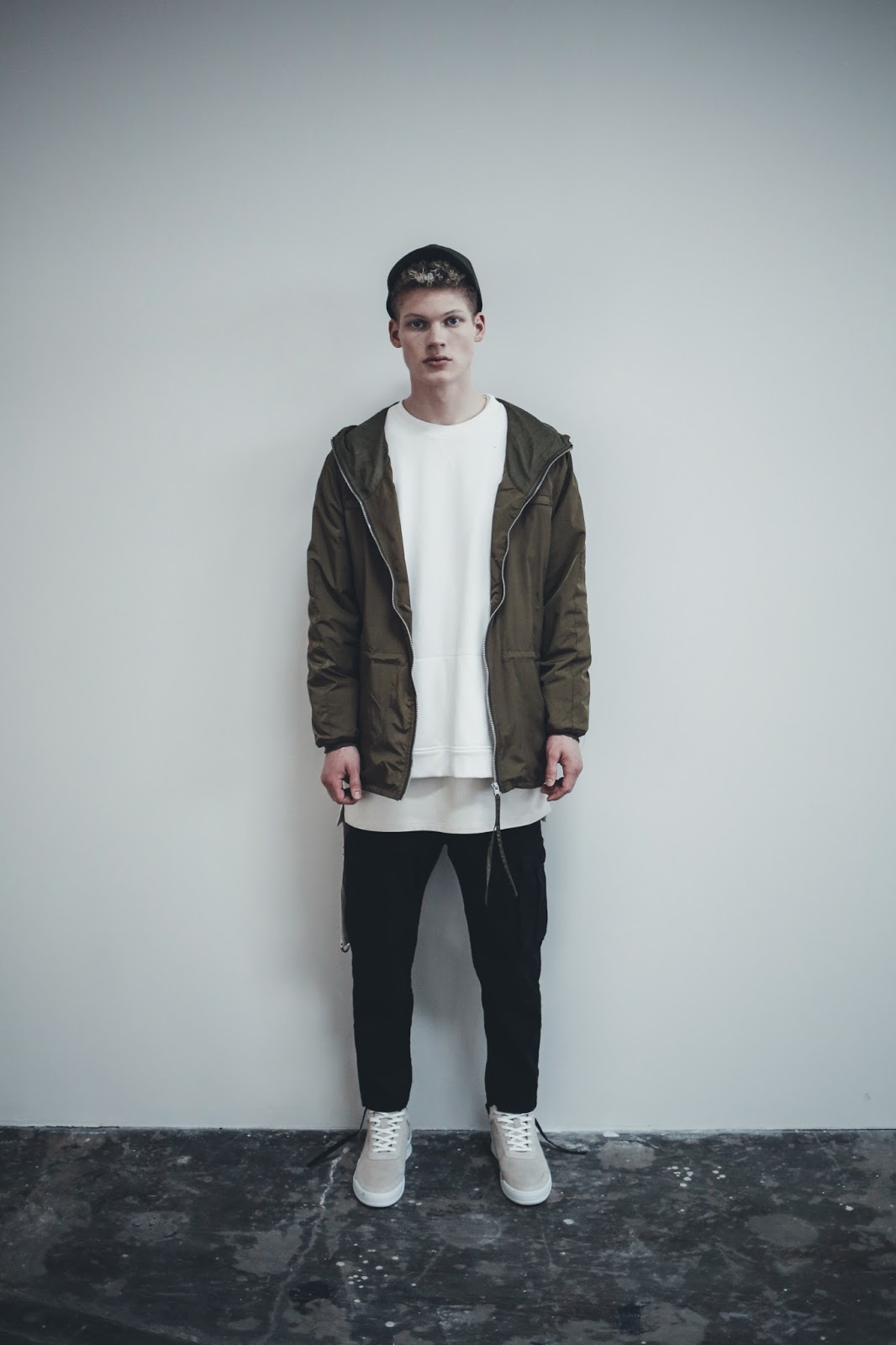 Chris Stamp, Creative Director of LA based menswear brand STAMPD, debuted "The New Soldier" FW16 collection at his first NYFWM presentation yesterday morning. The 20 looks from the collection were presented on pedestals that rose above a dense fog that filled platform 3 at Skylight Clarkson North, designed in collaboration with Brooklyn based creative team, Snarkitecture.